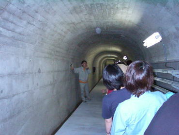 ![]() 左に案内の人が居ますが、ここから先はダムの 水の中だそうです! 途中、このダムが出来る前から完成までの写真が展示して ありました。懐かしい村の写真など・・・ |