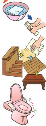 ●テーブルや床・手すりの掃除に拭き掃除には、衛生水にタオル等浸してお使いいただけます。 ●除菌のための拭き掃除に 2度拭きすると、さらに効果的です。 |