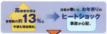 | 高齢者人口が増加している今日、浴室での温度ショック事故の対策が急がれています。 その解決策として浴室環境を安全、快適にするのが今度の新商品。 大風量、赤外線効果や施工性の簡素化などメリットも多彩。 高齢化社会を捉えた注目の製品です。 |