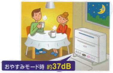 | インバーターで水流を制御することにより低騒音運転を実現。「おやすみ」モード時は運転音を約37dBまで抑えるので、深夜の運転も気になりません。 | ![]() |