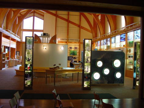 ![]() 中に入ると、高い天井と広々とした空間が印象的です。 今話題のプラズマテレビで常時解説してあり、模型や資料、写真でわかりやすくなっています。 |