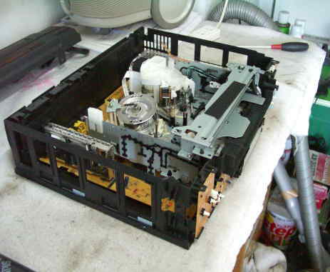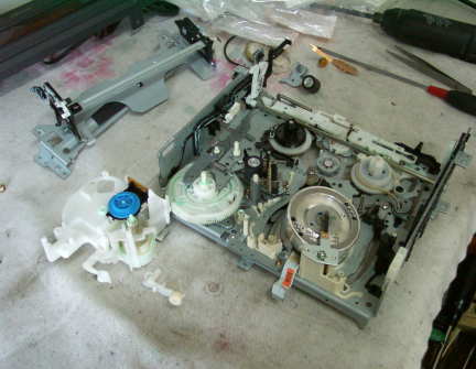 ![]() 銀色の円形が「ヘッド」と言います。 冬、結露に注意が、ここです、ここにテープが巻きつきテレビの画面にでるわけです。 (かなり速い高速回転します。) |